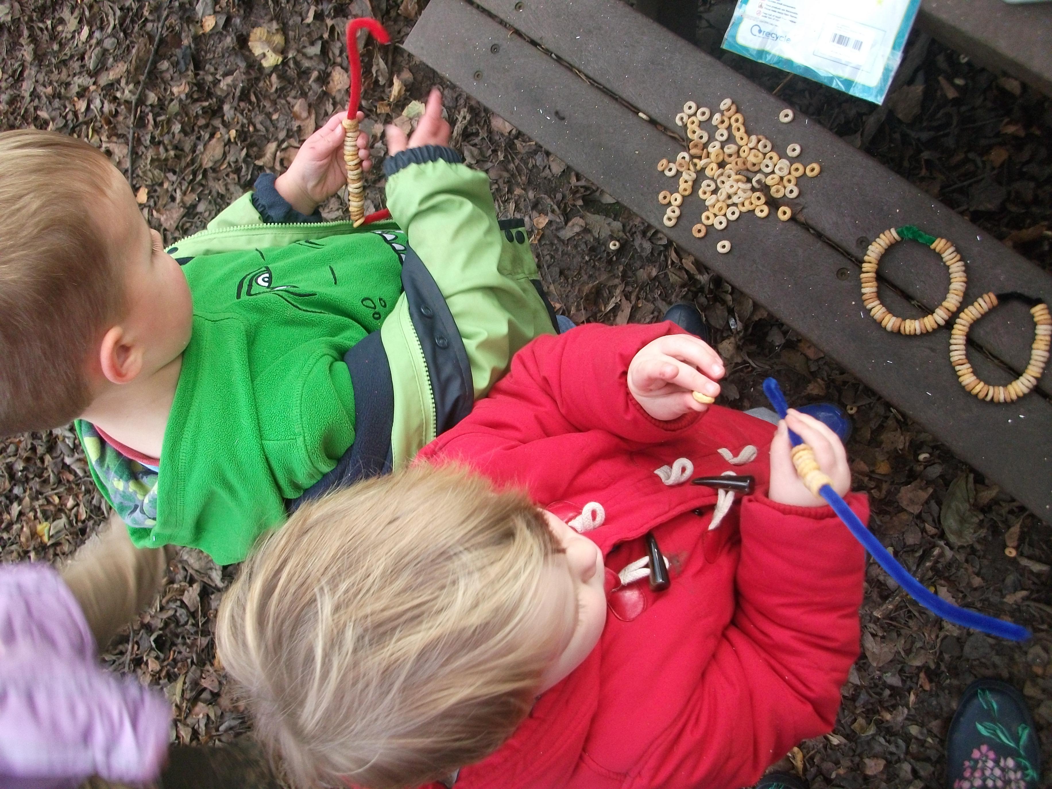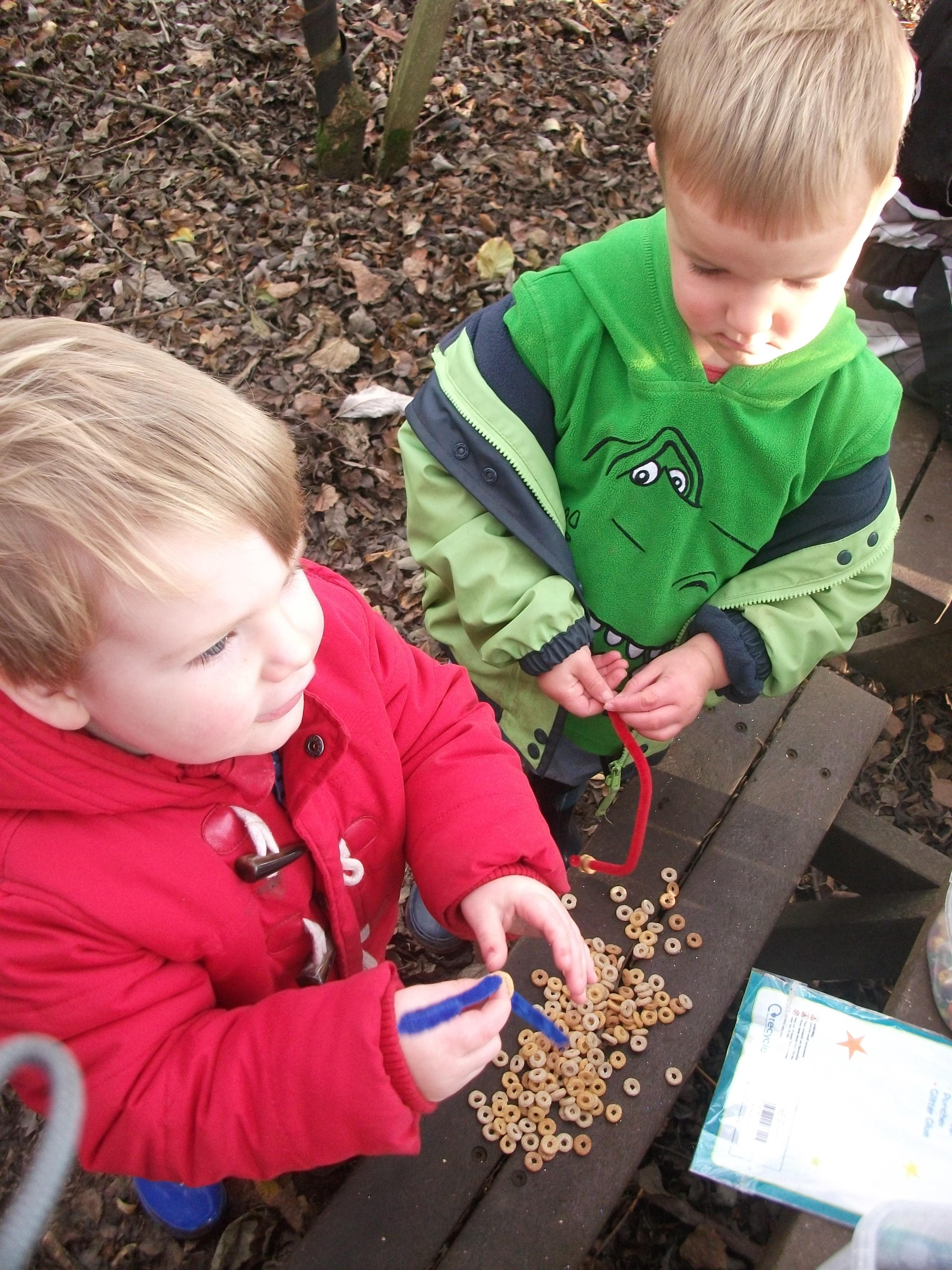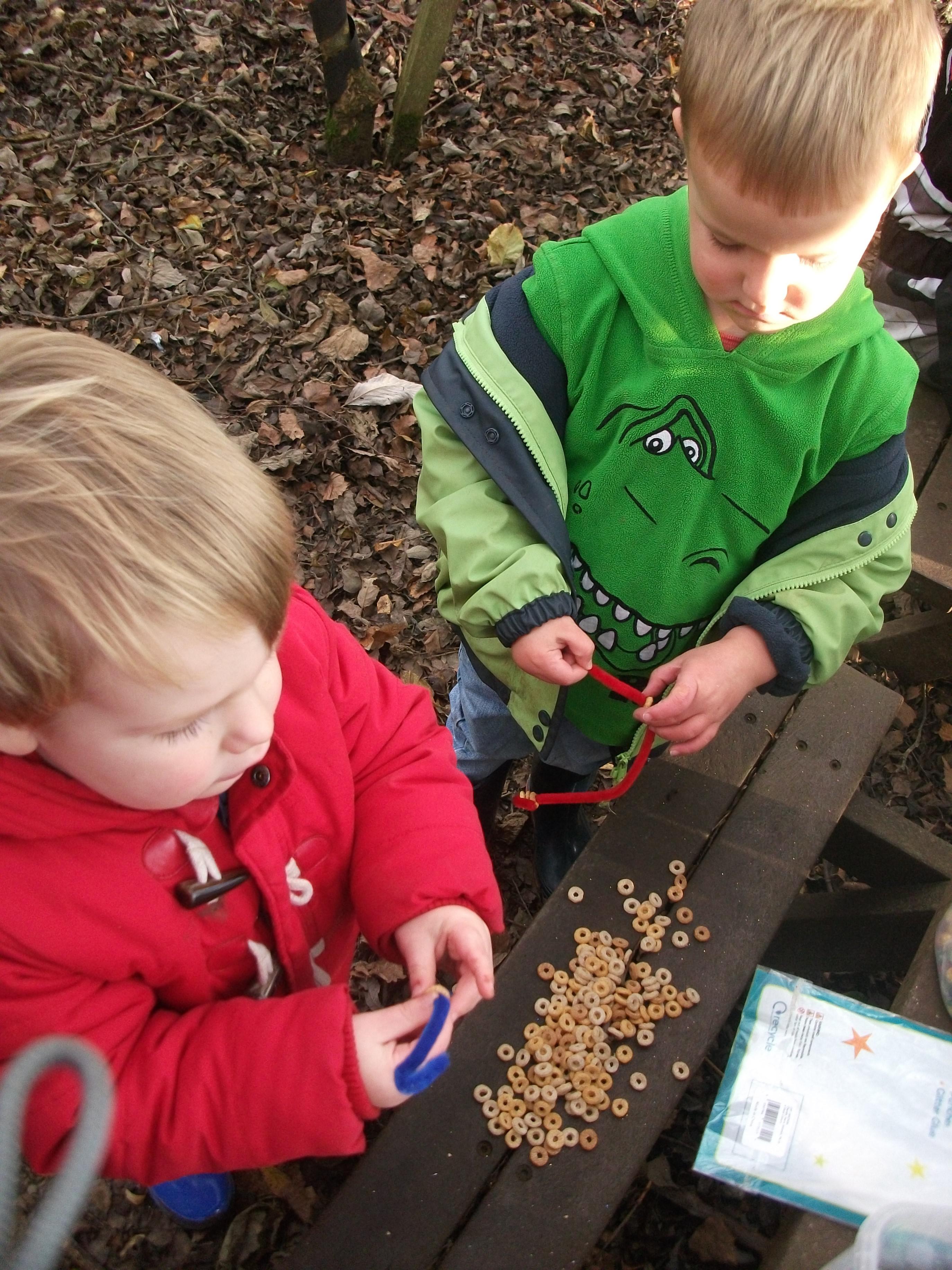 Forest school and cheerio bird feeders