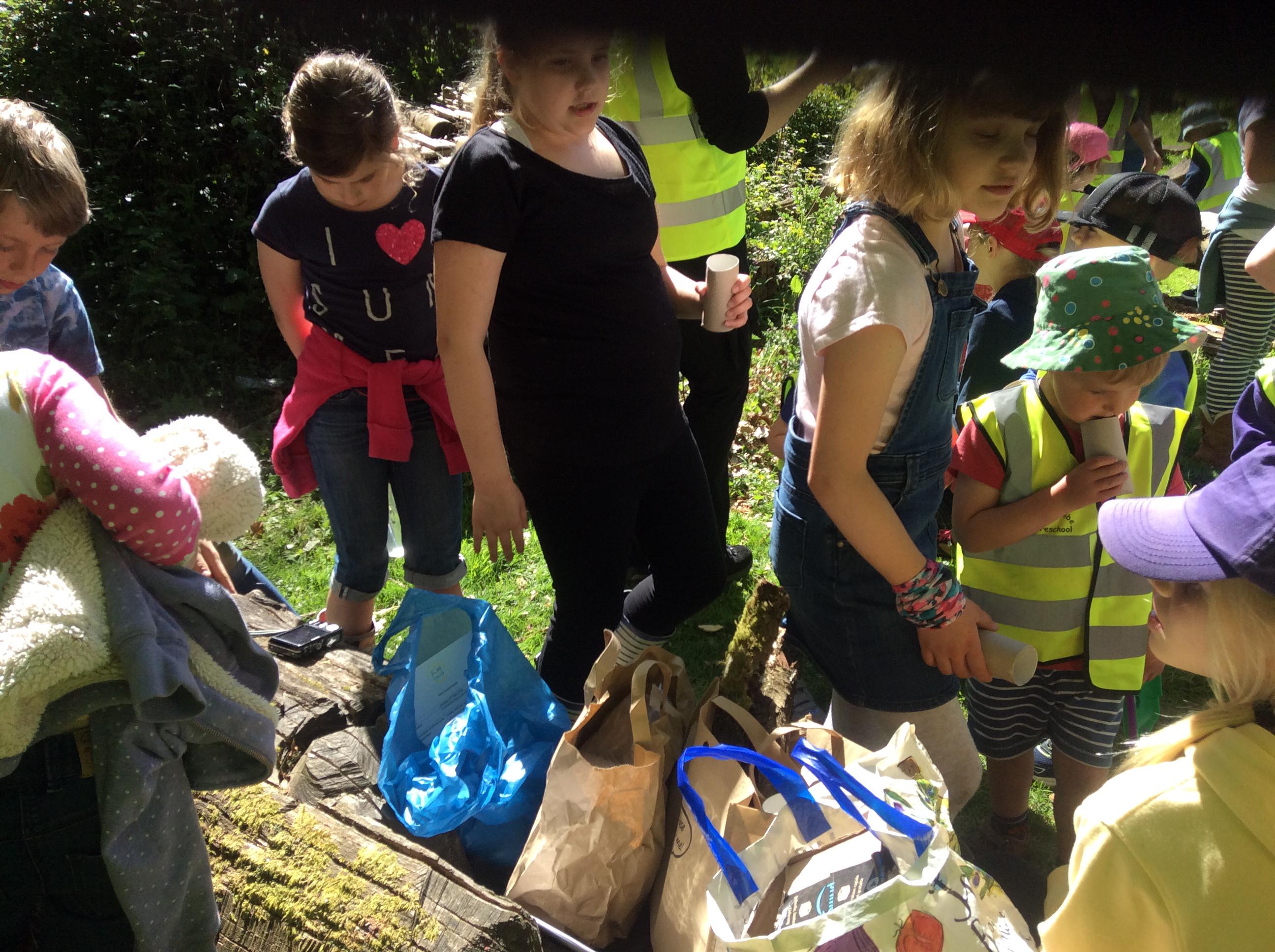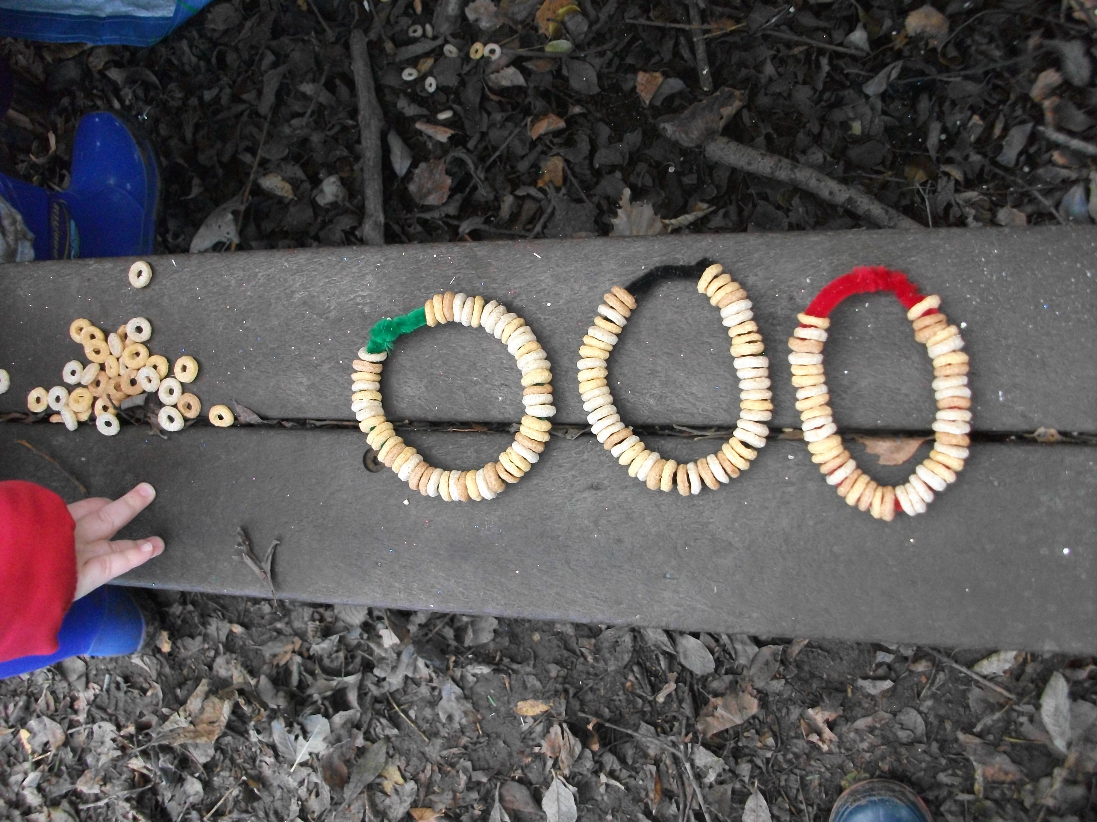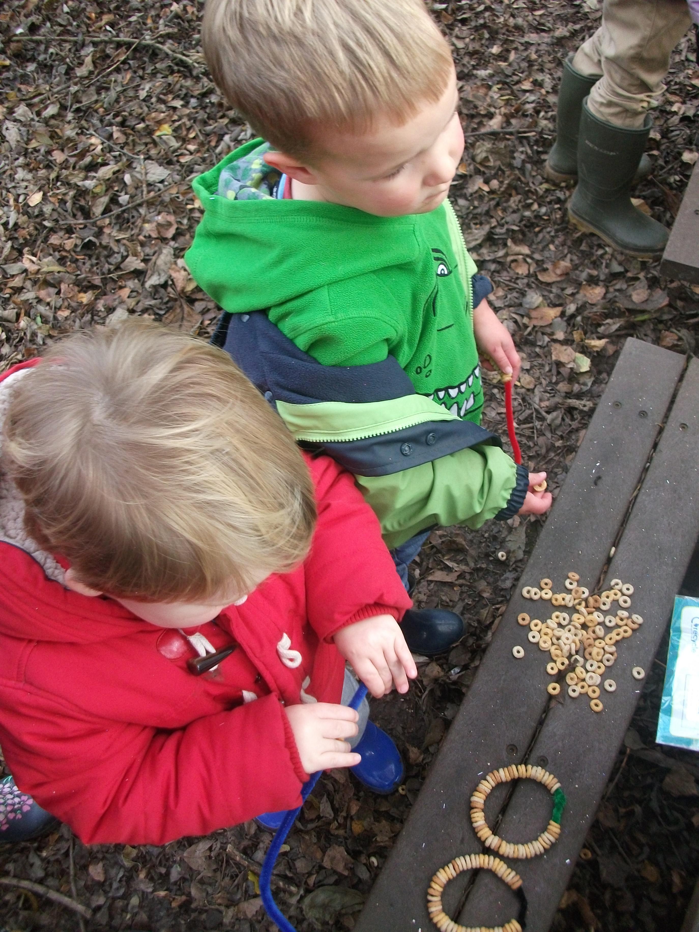 Forest school and cheerio bird feeders